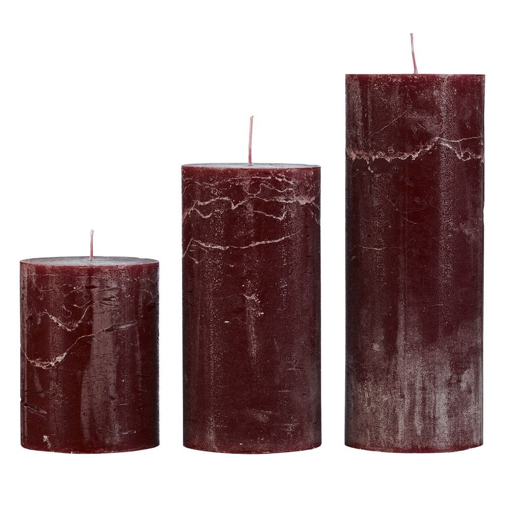 Rustikale Stumpenkerze in Bordeaux für Ihren Tisch, Adventskranz uvm.
